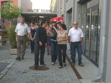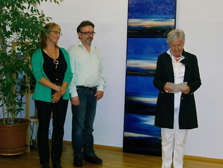 Stadträtin Elisabeth Mathis erklärt die Arbeiten - daneben: Drehpunkt Gastgeber Christiane und Georg Feuerstein | |